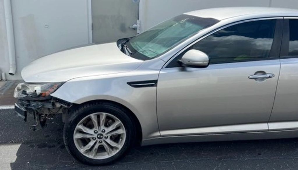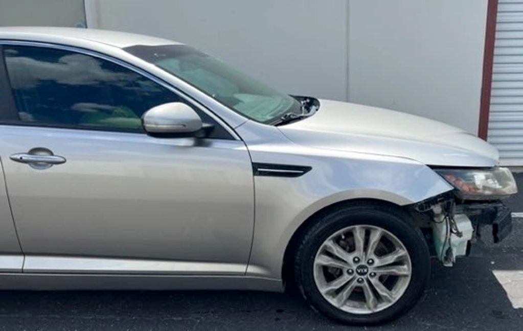 2011 kia Optima EX (fancy model), 95,000 miles. These photos show the car before anything was visually improved other than removing the bumper. These are the original fenders and hood, which needed no repairs.